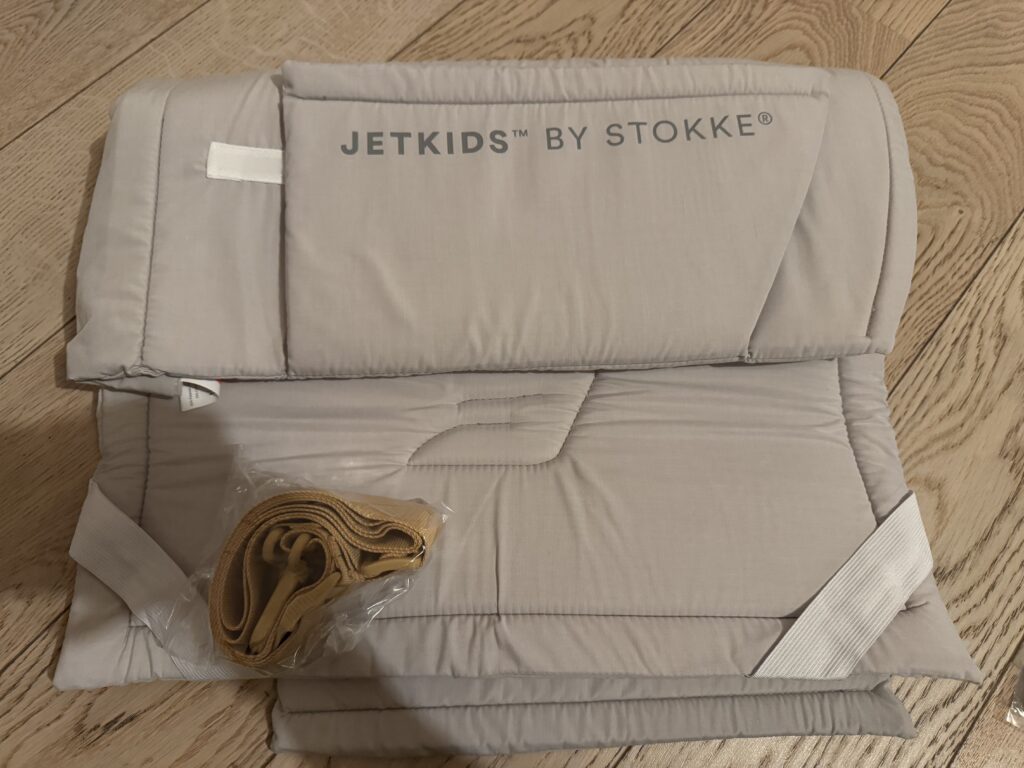 そしてもう一つの付属品、マットレスです。このマットレスを広げて「JETKIDS」本体に設置すると、ベッドに変身します。設置した感じは後ほどご紹介しますね。