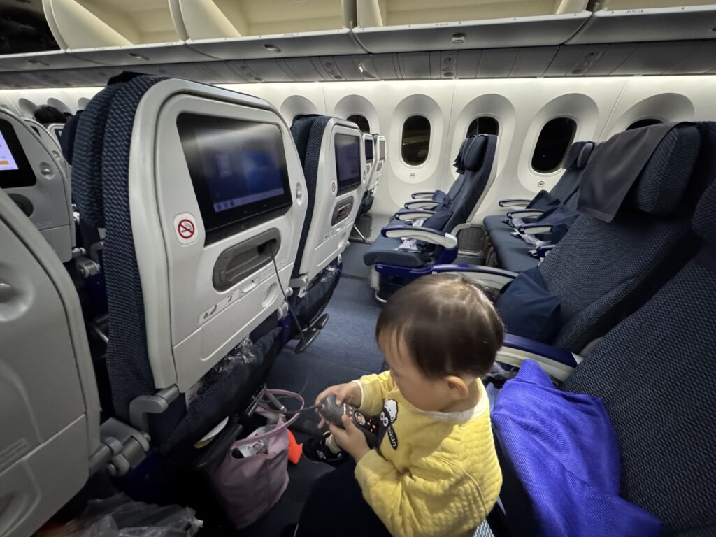 かなり快適だったようで、横になるとすぐに寝て、なんと15時間のフライト中10時間も寝てくれましたよ!息子があまりにも寝るので、逆に私は暇でした(笑)