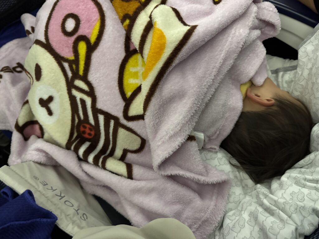 着替え、おむつ、お菓子、おもちゃ、絵本・・・等の大量の荷物はもちろんですが、他に心配なのは「機内で寝てくれるか?」問題じゃないですか?