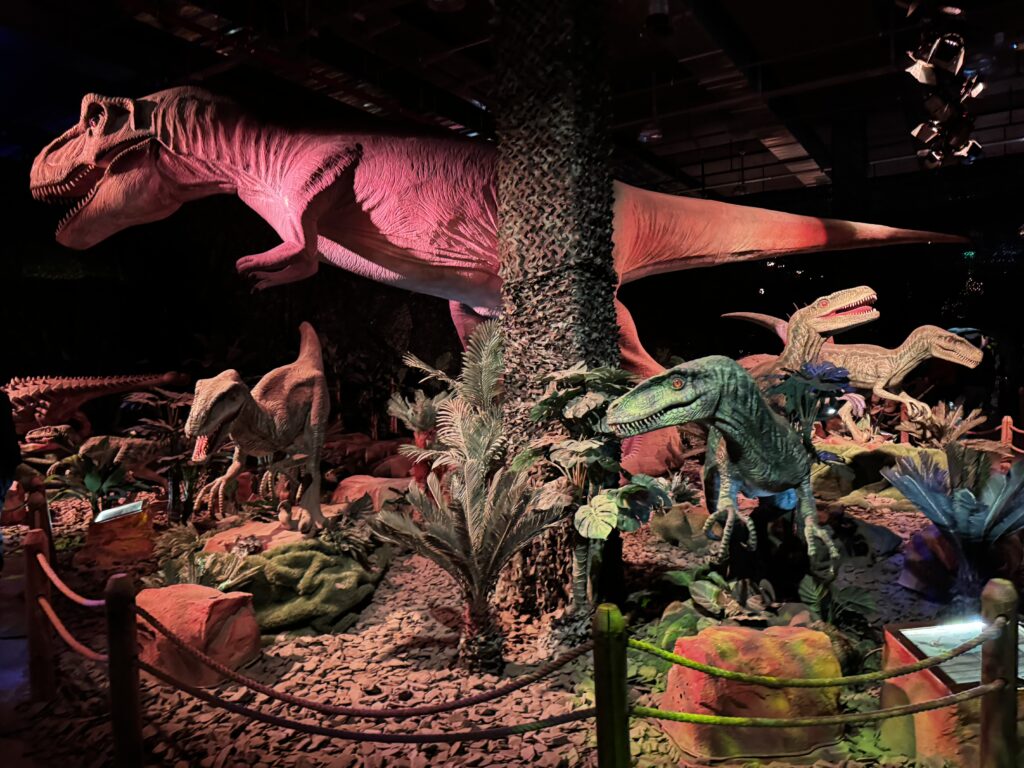 照明が通常に戻ると、周りに色んな恐竜がいたことに気が付きました。群れで動くヴェロキラプトルはたくさんいましたよ。