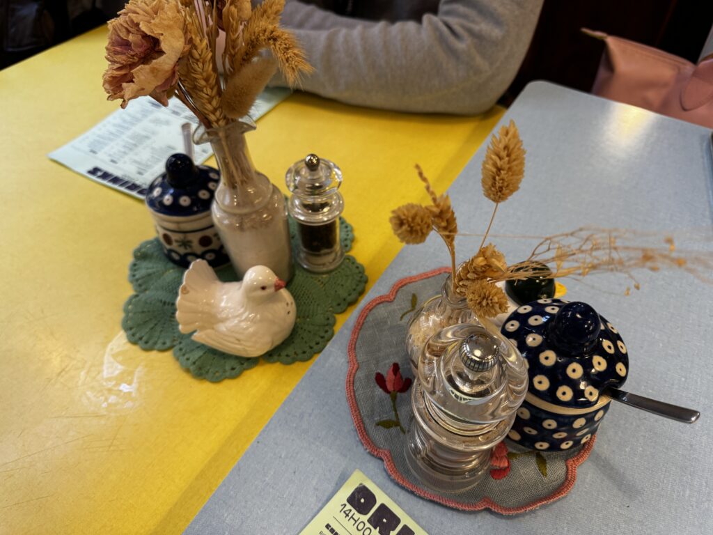 各テーブルに置かれた調味料入れ、どれも可愛くて癒やされます。