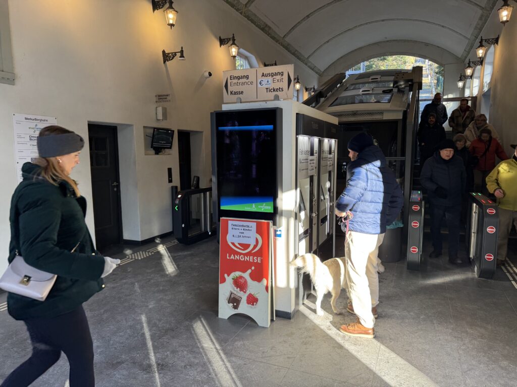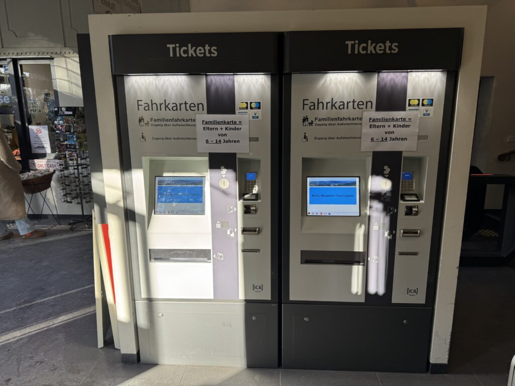 中に入ると、ケーブルカーのチケット販売機と、有人カウンターがありました。