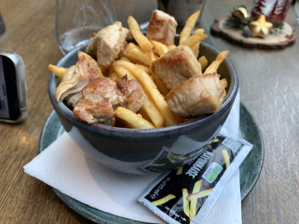 まずは、息子用のキッズメニューです。フライドポテトと焼いた鶏肉というシンプルなものです。だいたいどの国でも、キッズメニューはこんな感じなのですが、子供達は野菜とか食べなくてもいいんでしょうかね?