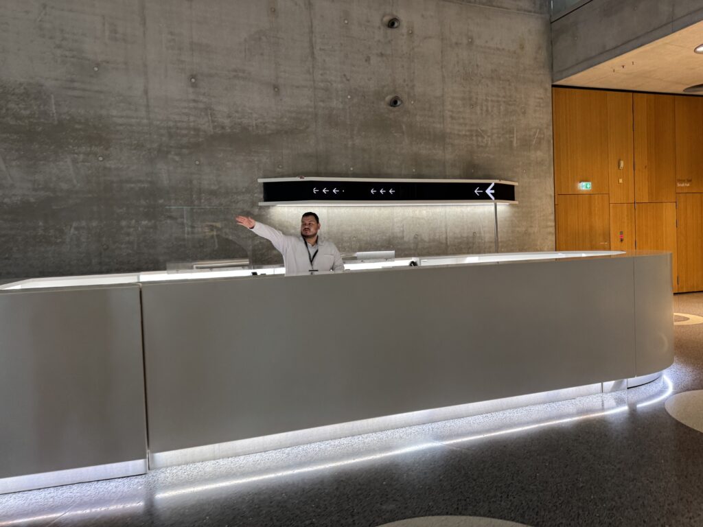 駐車場からエレベーターに乗って中に入ってきました。グランドフロアもピッカピカで近未来感があります。
