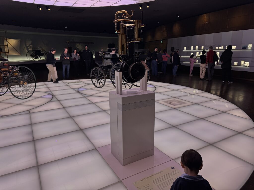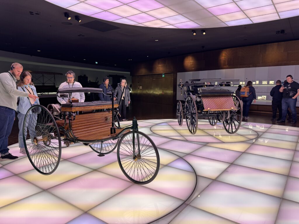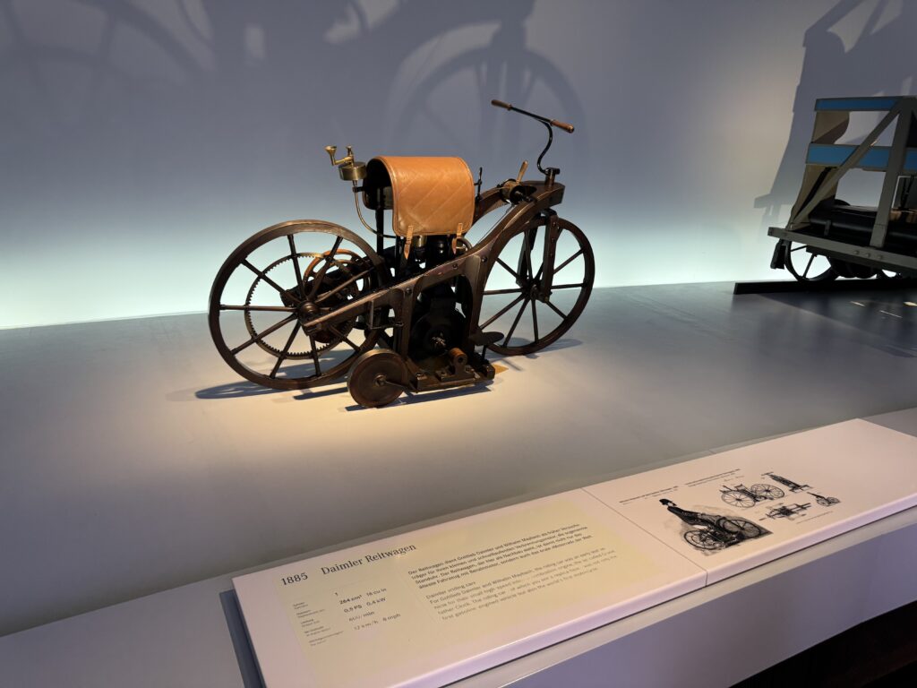 同じ展示場所に、世界初の自動車「ベンツ・パテント・モトールヴァーゲン(1886年)」が展示されていました。これは、自動車の原点とも言える三輪車で自動車の歴史に非常に重要な乗り物なんだそうです!