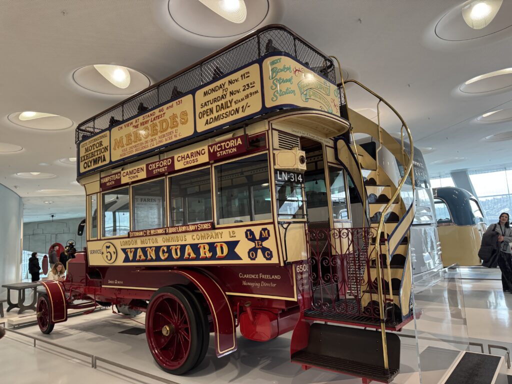 あとは、こんなオシャレな二階建てバスが展示されていたり、色んな種類のメルセデス車が並んでいました。