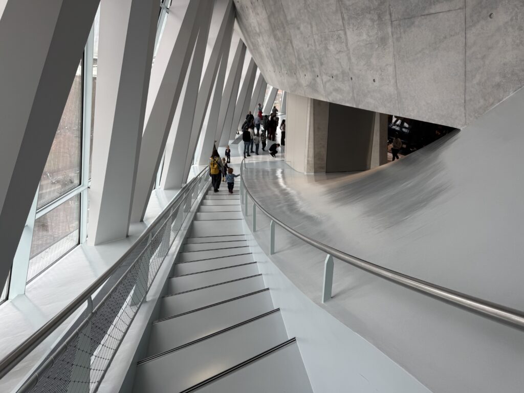エレベーターで一気に最上階まで登り、螺旋階段を降りながら展示を見ていく展示の仕方になっていました。