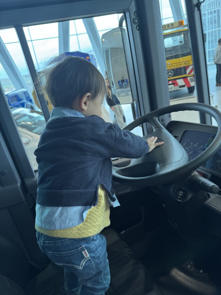 大型バスだったので、たくさんの人が乗っていました。運転席は子供達に人気すぎてなかなかあかなかったのですが、なんとか乗ることができました!