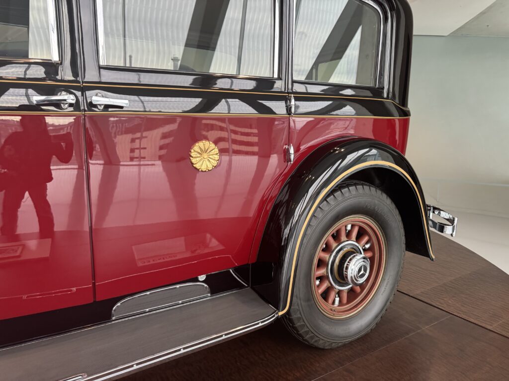 車の側面には菊の紋章も付いていました。色もえんじ色で日本らしさを感じますよね。