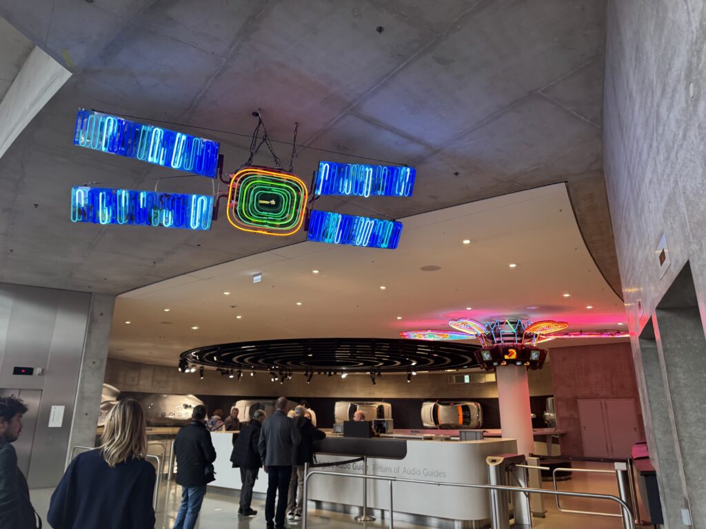 エレベーターを待つ間、隣の展示場がちらっと見えたのですが、車が壁に貼り付けてあって、想像を絶する展示の仕方に驚きました。