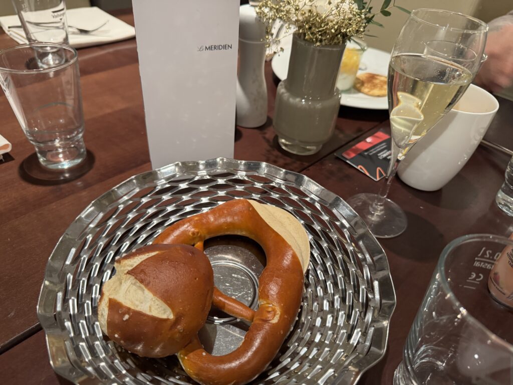 ドイツと言ったらプレッツェル!ということで、食べてみましたが、想像以上に柔らかくて美味しかったです。朝からスパークリングワインも頂いちゃって贅沢な朝食となりました。
