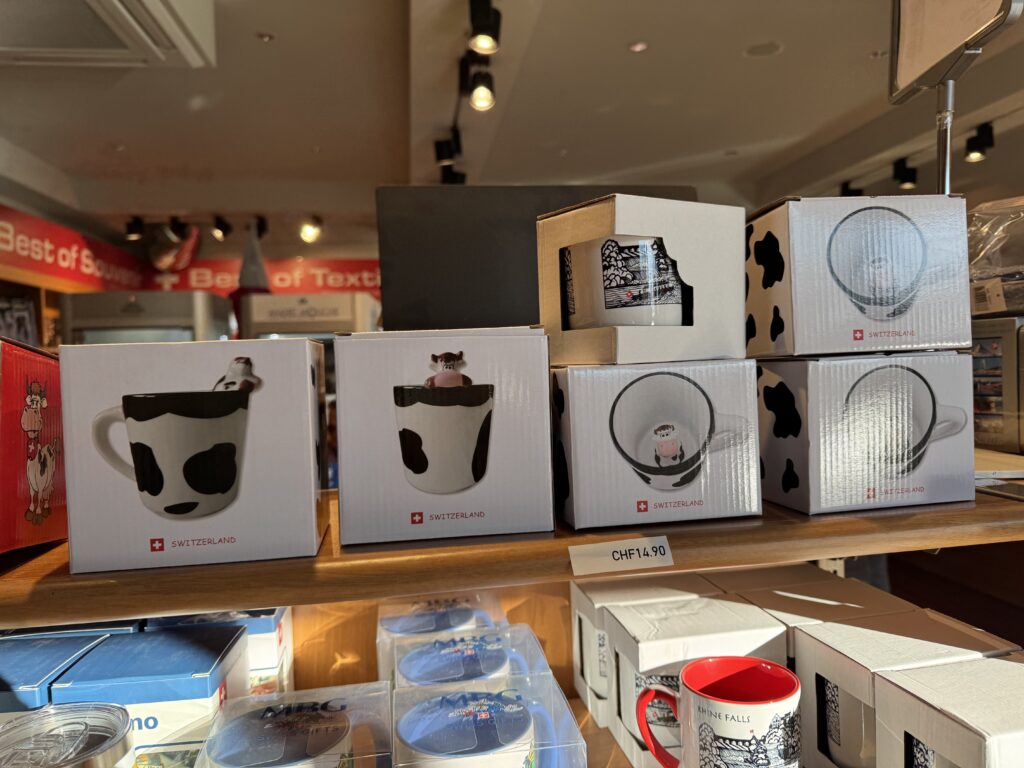 可愛い牛さんのマグカップやスイスらしいお土産がたくさん売っていましたよ!