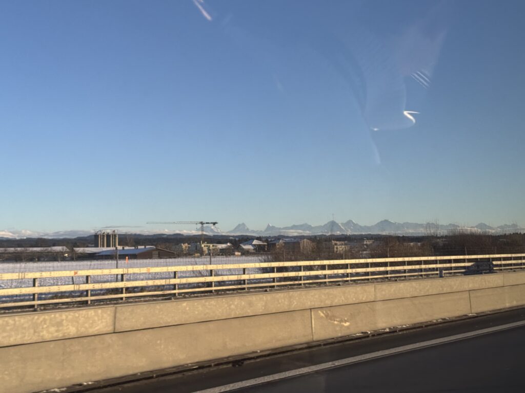 時刻は16時になり、いよいよジュネーブが近づいてきました。遠くにはアルプスの山々が見えていて、スイスらしさを感じます!
