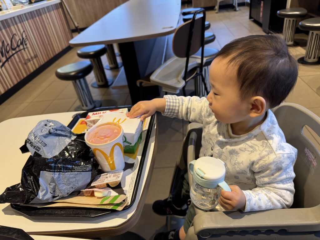 それから、初めてのマクドナルドです。ハッピーセットのおもちゃを買ってあげたいという母の気持ちから2セットも・・・