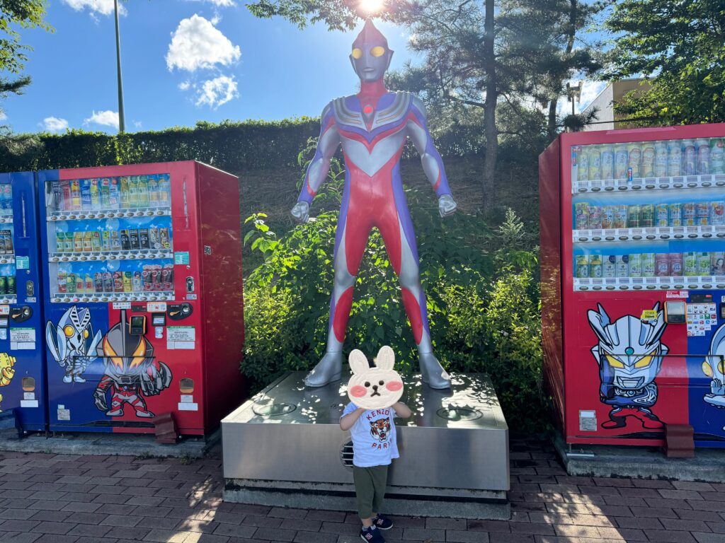「福島県発祥ならこれも行かなきゃ!」ということで、ウルトラマン像も見に行きました。ウルトラマンの生みの親、円谷英二さんの出身地だったんですって。知らないことがいっぱいでびっくりです。息子はウルトラマンを見て「パパ〜!」と呼んでいました。よかったね、パパ(笑)