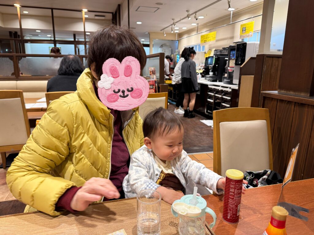 お次は初めてのファミレスです。私が子供の頃は、家族でファミレスに行くのがとっても楽しみだったのを思い出しました。