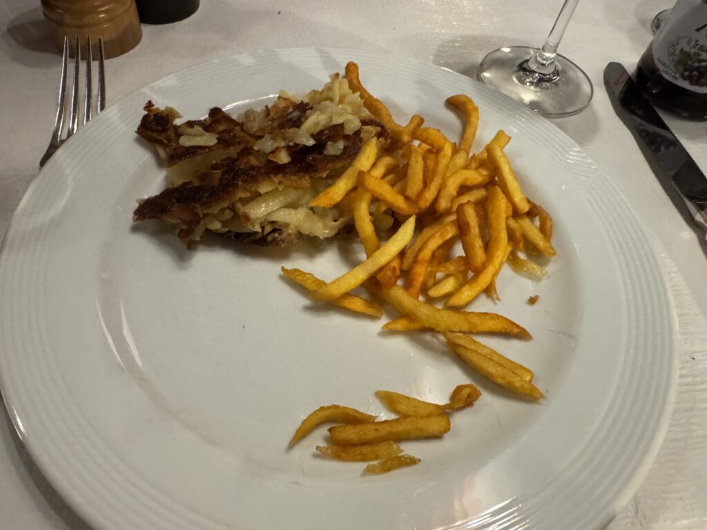 こちらは一人前が2分の1ポーションで、一人39フランです。つまり、2人で78フランでした。ただ、これには追加で・・・